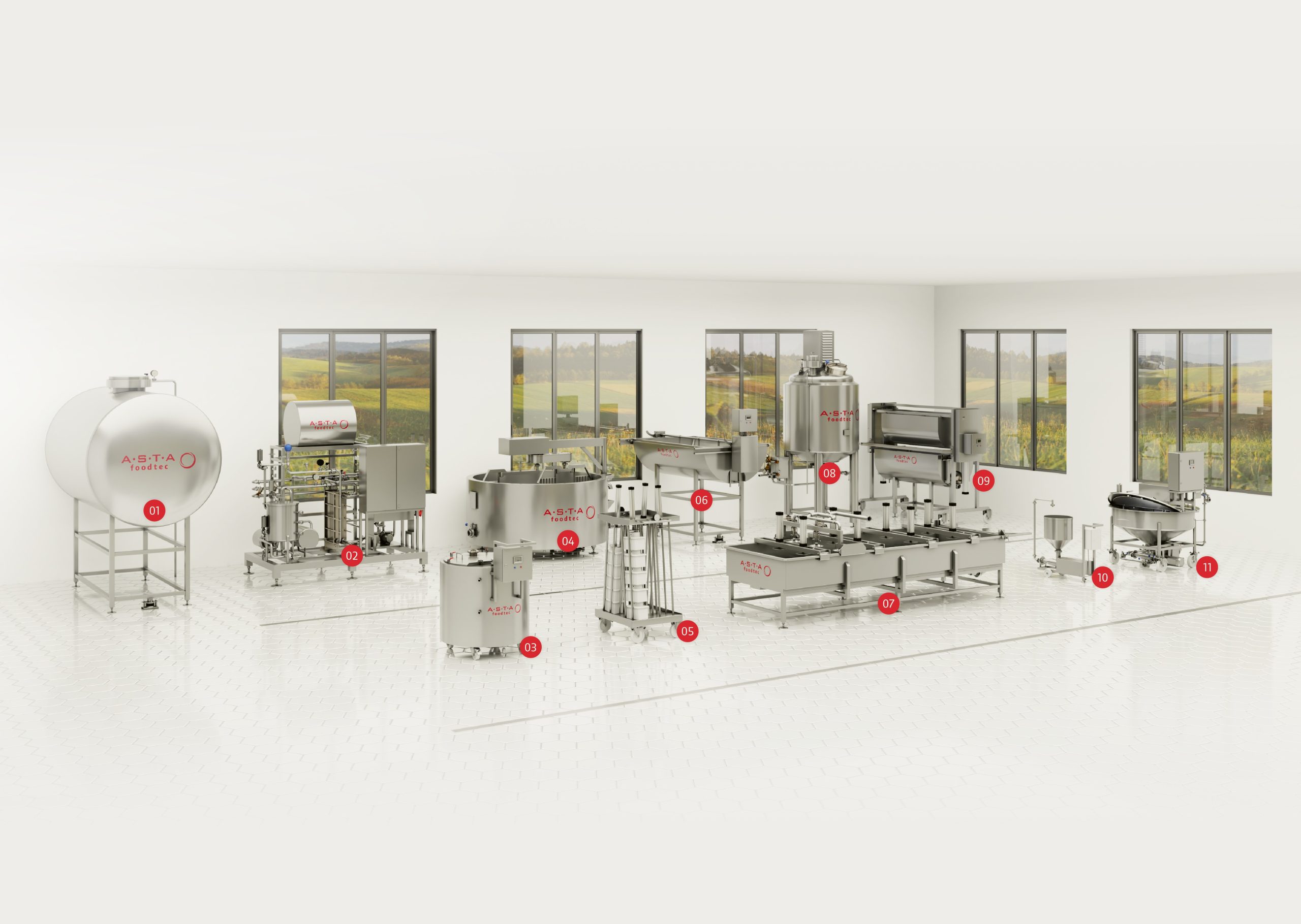 Mit unserem umfangreichen Produktspektrum für die Hofmolkerei decken wir alle Prozessschritte ab, von der Milchannahme über die Milcherhitzung bis hin zur Weiterverarbeitung. Entdecken Sie die hochwertigen ASTAfoodtec Maschinen für die Hofmolkerei anhand unserer Beispielanlage.